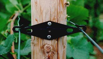 Trådholderen monteres på en side af stolpen. til dobbelt trådet espallier.
