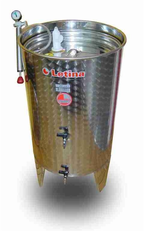 Med tankene følger støvlåg, gærlås, pumpe med manometer og lukkemembran. Tanken leveres med fødder. 320 l tanken har stor aftapningshane 1" i bunden.