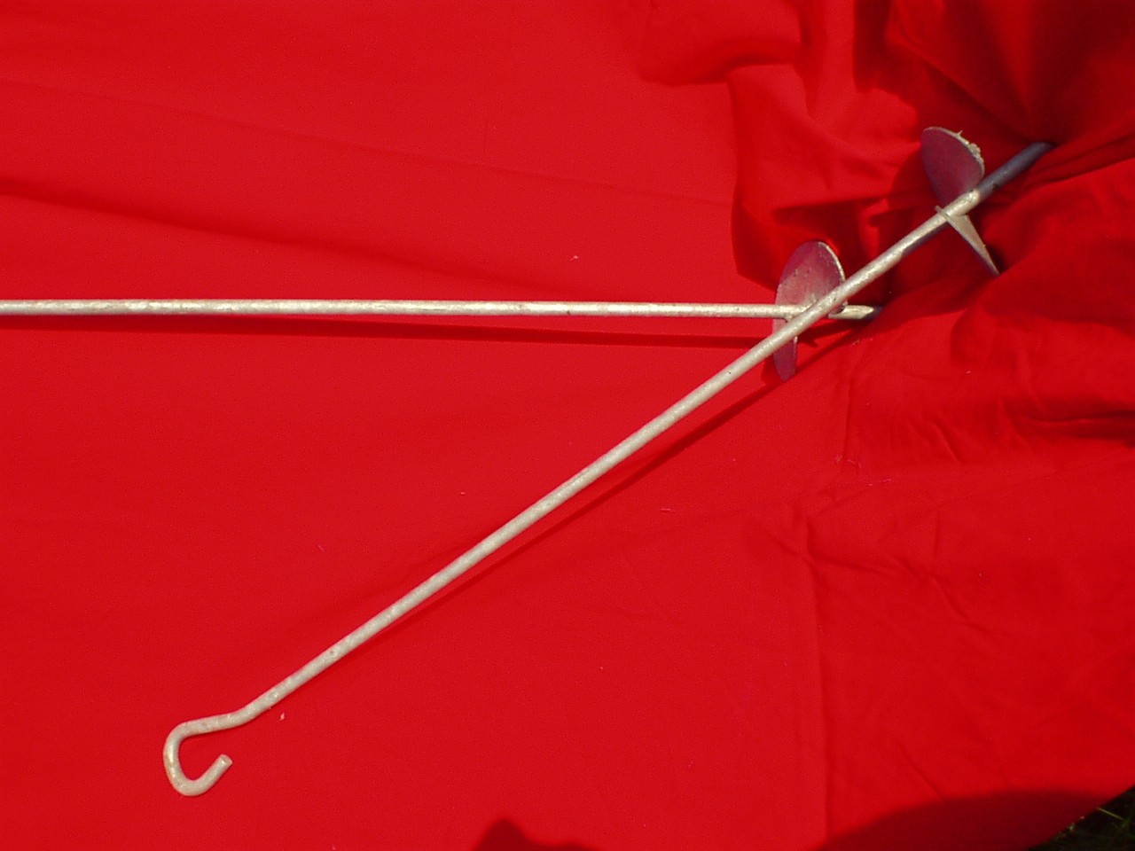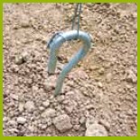 0Tallerkenanker. Velegnet at holde espallieret, også i stenet jord. Ankret drejes på plads. Længde 1 m.